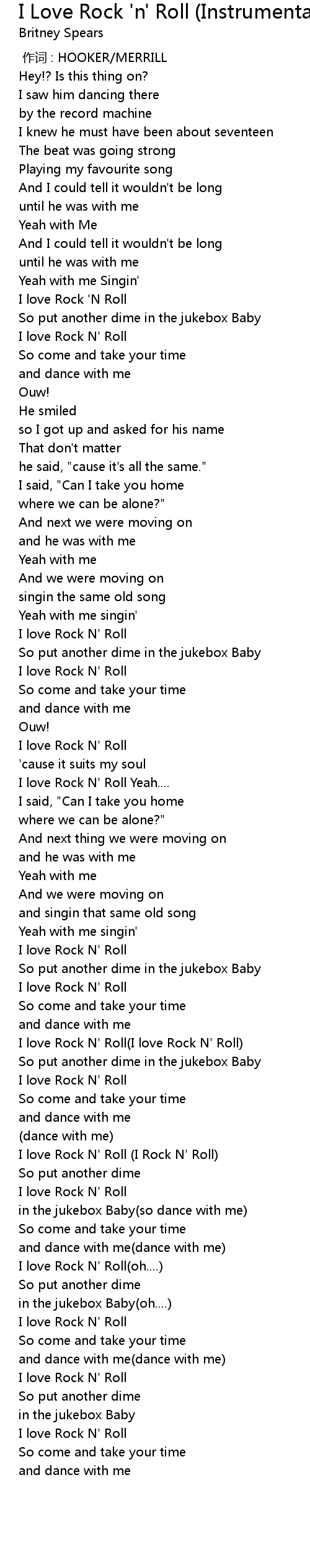 Joan Jett - I Love Rock 'n' Roll (lyrics), I Love Rock 'n' Roll Joan Jett LYRICS I saw him dancin' there by the record machine I knew he must a been about seventeen The . We Have got 9 picture about I Love Rock And Roll Lyrics images, photos, pictures, backgrounds, and more. In such page, we additionally have number of images out there. Such as png, jpg, animated gifs, pic art, symbol, blackandwhite, pic, etc. "Britney Spears - I Love Rock 'N' Roll (Official HD Video)", "I Love Rock 'N' Roll" by Britney Spears Listen to Britney Spears: https://BritneySpears.lnk.to/listenYD Subscribe to the official . "Britney spears-I LOVE ROCK "N"ROLL(LYRICS)", Please like and subscribe to our YouTube channel ❤️ comment down below if nagustuhan niyo❤️ JUST INJOY THE MUSIC...